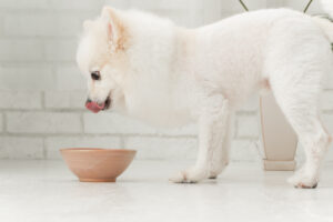 柔らかく淡いピンクの釉薬で彩られたペットボウルです。